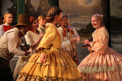 […] denne vellykkede forestillingens force [er]: Den gode fingerspissfølelsen for epoken og miljøet, og en satirisk brodd som går fint hånd i hånd med genuin munterhet.